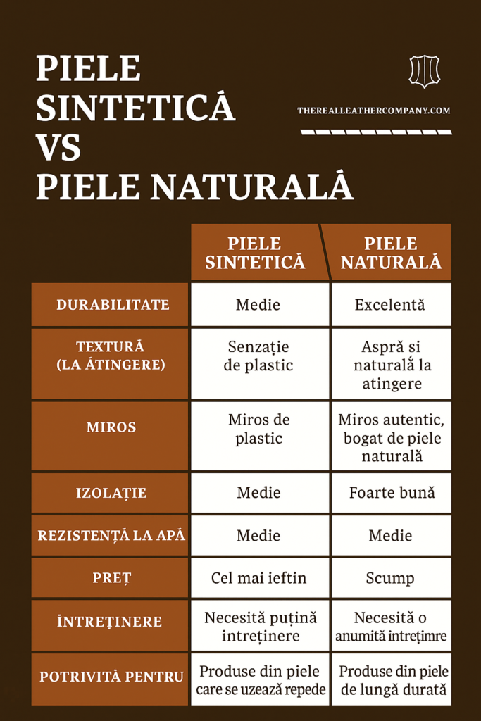 | Criteriu | Piele naturală | Material sintetic |